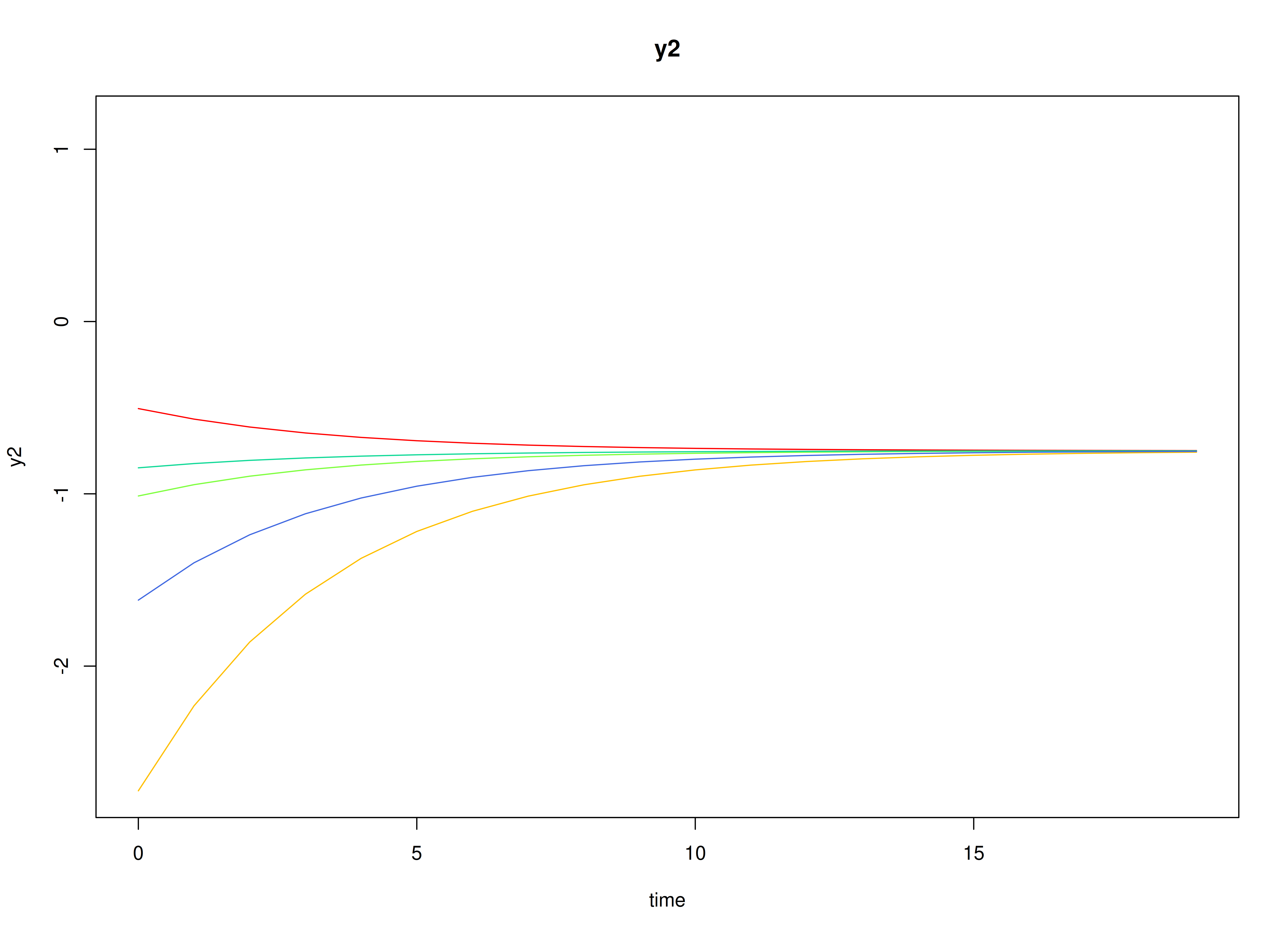 #> [1] 0.45Visualizing the Dynamics Without Process Noise and Measurement Error (n = 5 with Different Initial Condition)